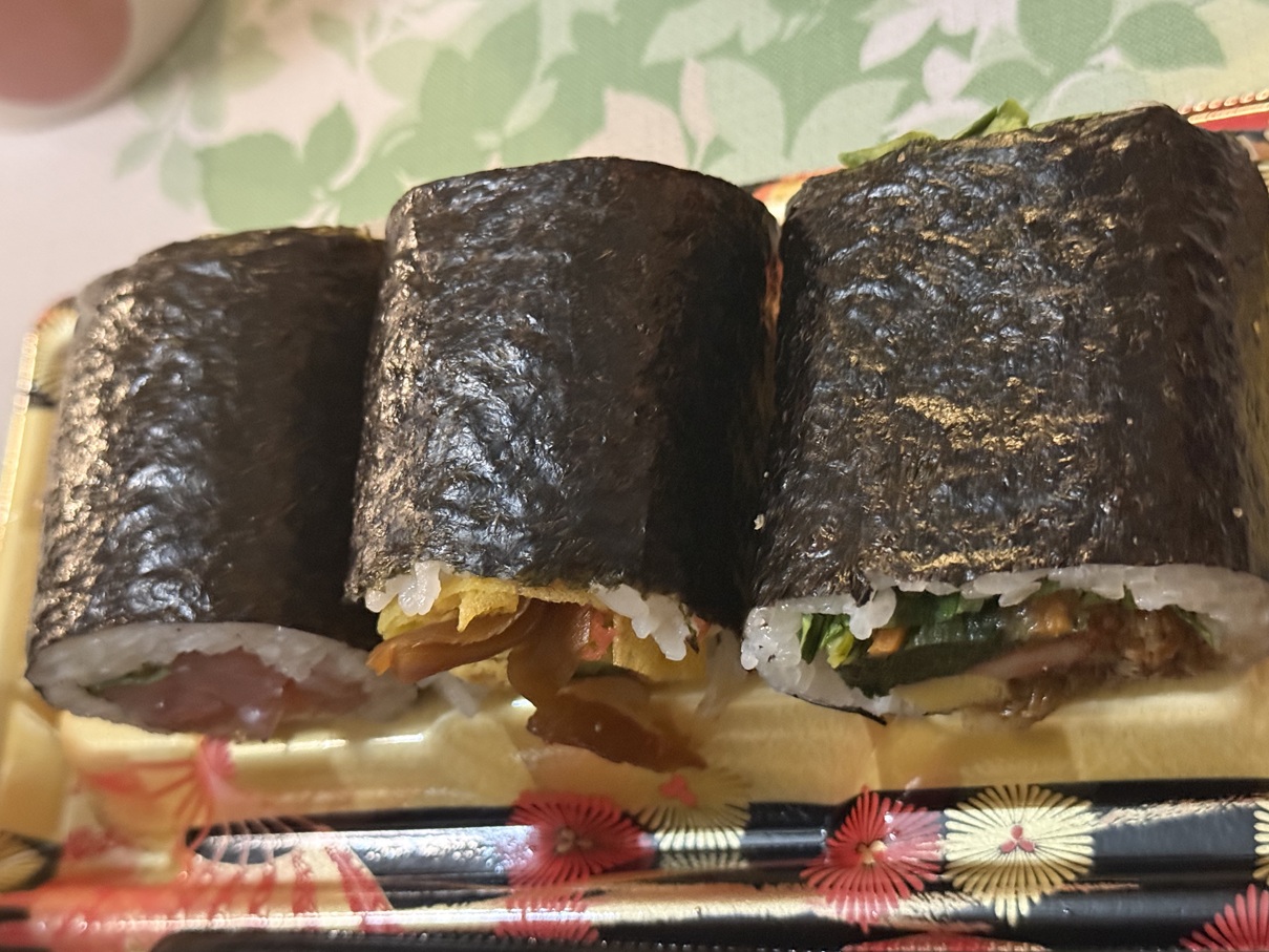 近づくにつれだんだん面倒くさくなり、仕事の帰りに買って帰ろうと思っておりましたが、本日は帰りが遅く、スーパーに寄ったごろには恵方巻は売り切れ。
