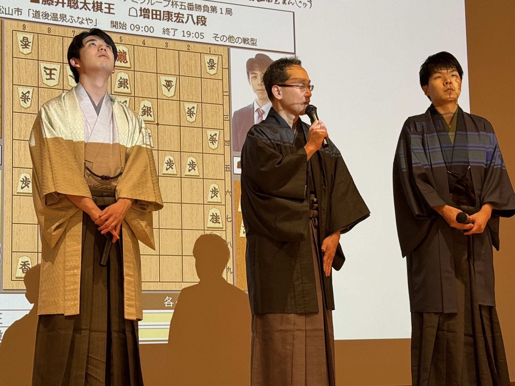 松山で棋王戦が開催され、そのレセプションに義兄とそのお兄さんが参加させていただきました。