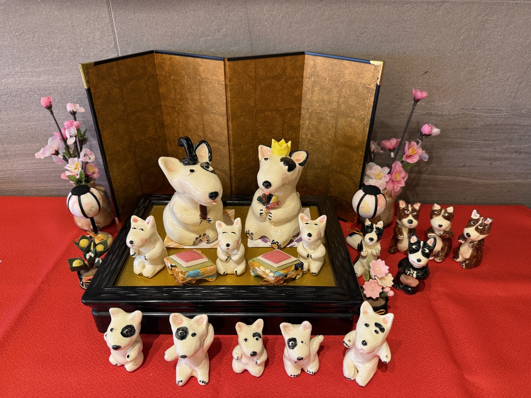 相変わらず、小道具は間に合っておりませんが、人形だけはロビーに飾りました。